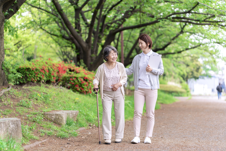 服薬のサポートや健康状態のチェック、簡単な運動のサポートを行います。